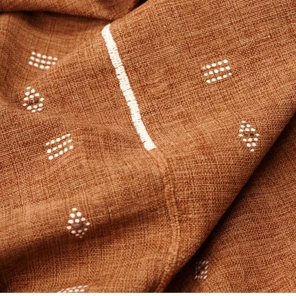 The Reyti is an organic cotton blanket, woven using an ancient hand-looming technique that originated in the western part of India. Reyti means mud or sand in Hindi. The edges are hand-rolled and the design is hand-embroidered. It takes an incredibly skillful master artisan to make this special piece.