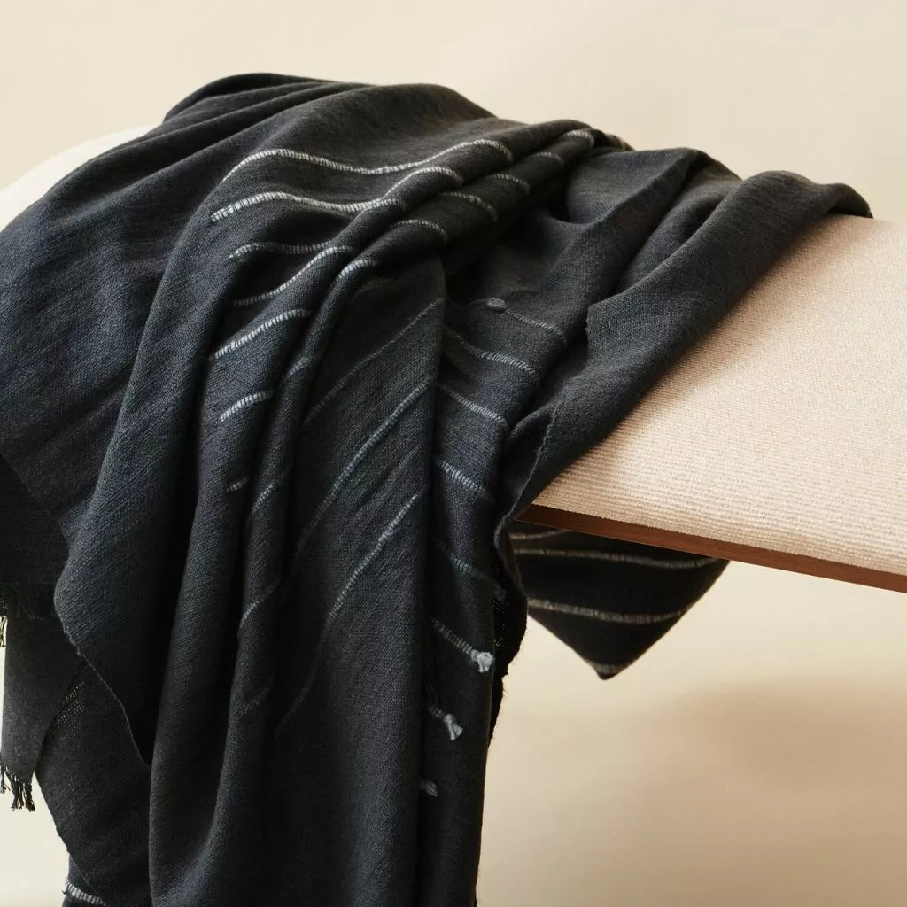 This handwoven throw is dyed with earth friendly dyes and made with hand spun yarn. It is made up of subtle textured stripes that create luxurious neutral gradient effect. The classic design and subtle color will add warmth to any room in your home. Comes packaged in a reusable canvas cotton pouch.