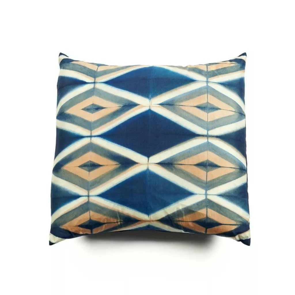The Tisa Silk Pillow is a luxurious, handcrafted throw pillow with a unique geometric Shibori dyed pattern to give your space a mid century feel. The symmetrical pattern is dyed by master artisans in India using premium quality, organic dyes that are sourced locally. The front of the pillow features the pattern, while the back is dyed solid in the main color. A Down filler insert is included so the Tisa Silk Pillow is ready to style. Small batch production ensures high quality and less waste.
