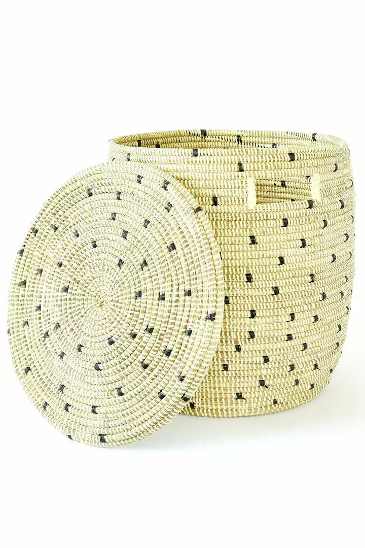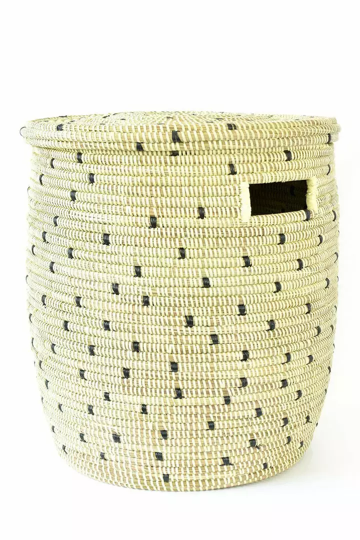 This handcrafted hamper is woven by rural women in West Africa. Use it as a hamper for laundry or a stylish way to store toys, blankets, or household items. These handcrafted baskets may vary slightly as compared to the photos, as each set is unique.