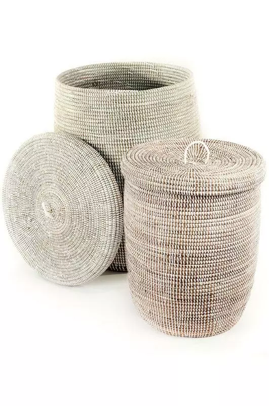 These handwoven baskets will bring style and function to your home. Use them to store laundry, toys, blankets, or other household items. This set was woven by women artisans in West Africa. These handcrafted baskets may vary slightly as compared to the the photos, as each set is unique.