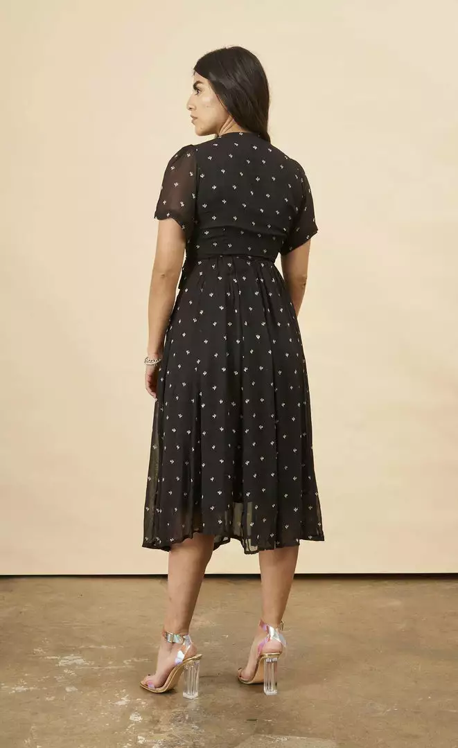 With its flattering neckline, tie-waist detail, and twirlable hem, this midi dress is the definition of dreamy. Block printed in a baby cacti print, this timeless dress is sure to turn heads and amass countless compliments. All of Symbology’s products are made by hand by women artisans who use traditional art techniques. They are committed to sustainable manufacturing practices, paying livable wages to the artisans and using eco-friendly dyes.