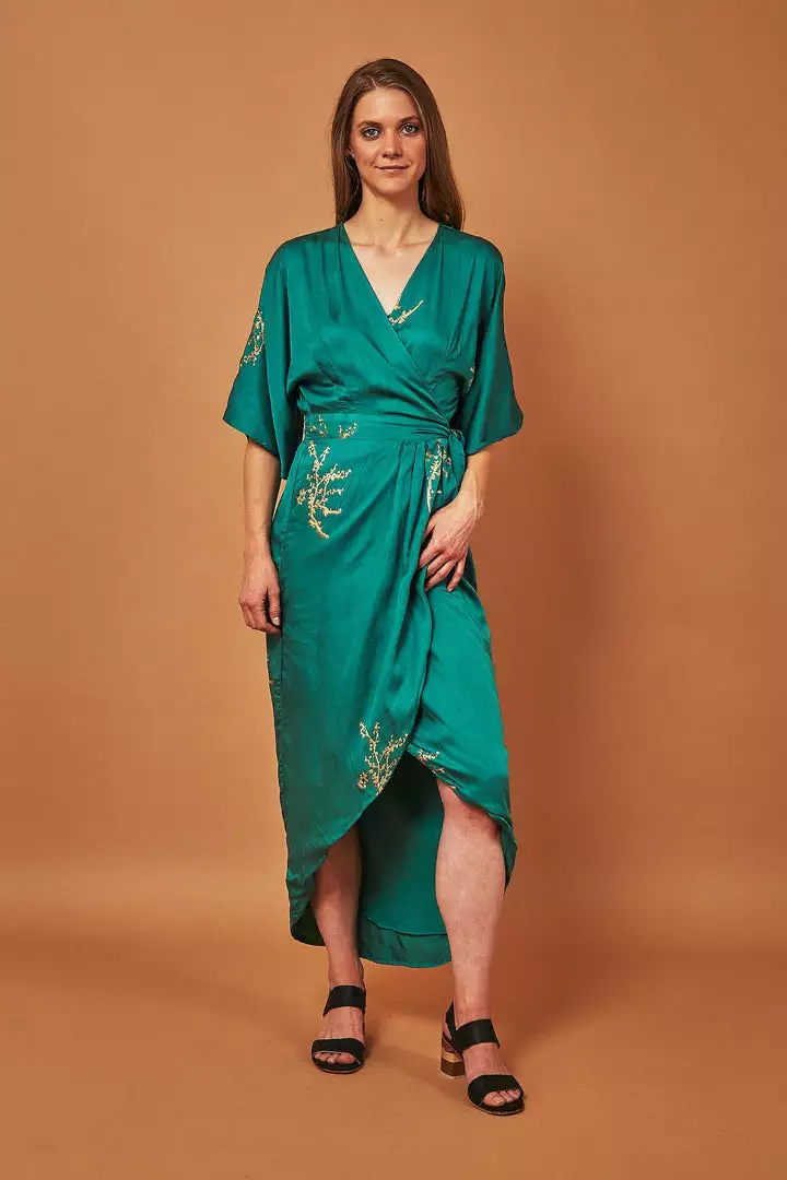 This maxi wrap dress in buttery soft modal fabric (what Symbology likes to call ‘vegan silk’) hugs your curves in all the right ways. And gives that gorgeous hourglass silhouette to those who aren’t as curvaceous. You’ll feel like you’re wearing a bathrobe but you’ll look like a million bucks.