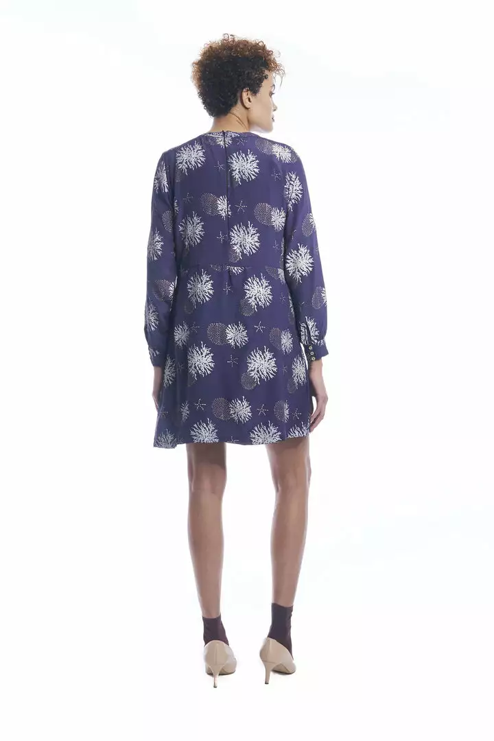This flowy, body-loving style is hand-printed in a Seascape pattern. Featuring stylized shimmering coral. All of Symbology’s products are made by hand by women artisans who use traditional art techniques. They are committed to sustainable manufacturing practices, paying livable wages to the artisans and using eco-friendly dyes.