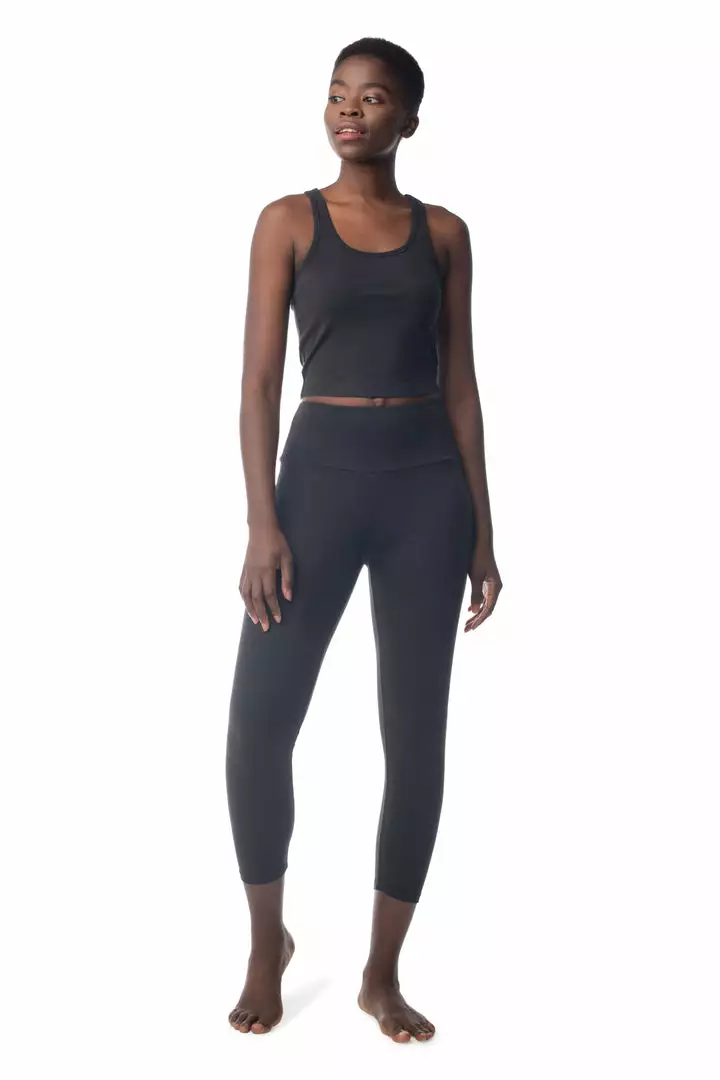 The 7/8 Legging is a cropped, simple legging for anything from stretching to a workout.
