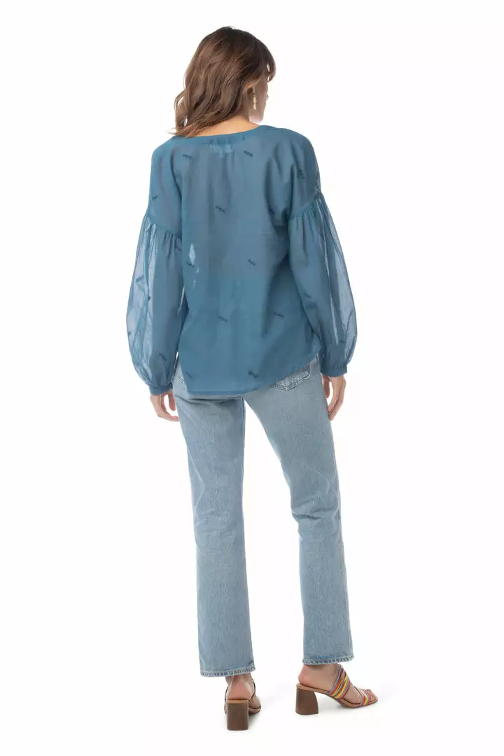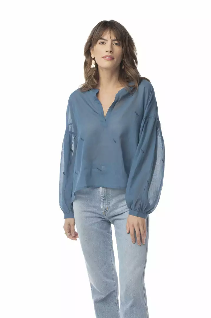 With a mandarin collar and a simple embroidered pattern, this long sleeve voile top will become a spring evening staple.
