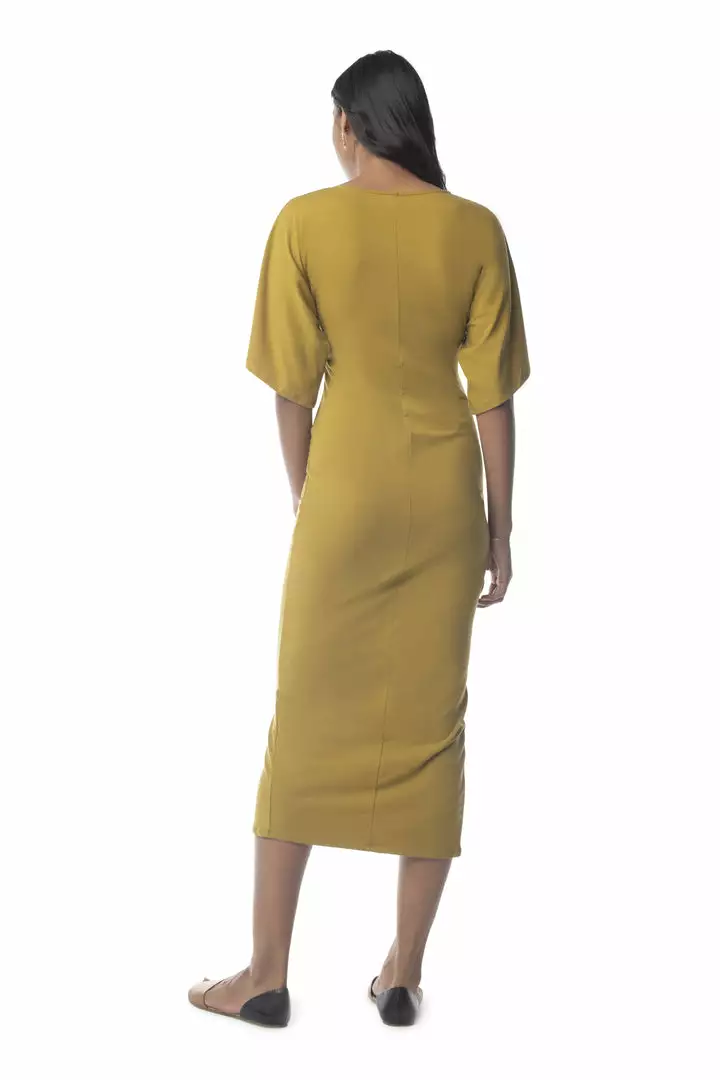 With a demure faux knot front and slit, the Ubud dress takes you from a wedding to that dress for a successful work meeting, in style.