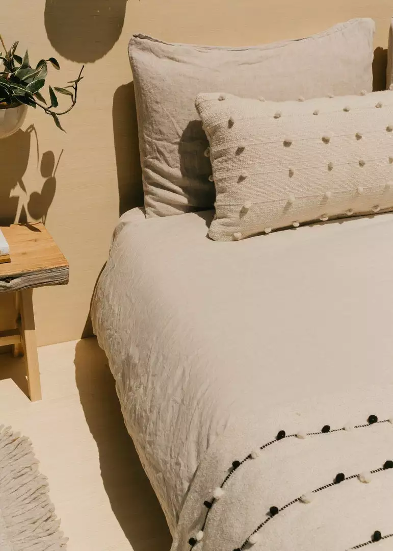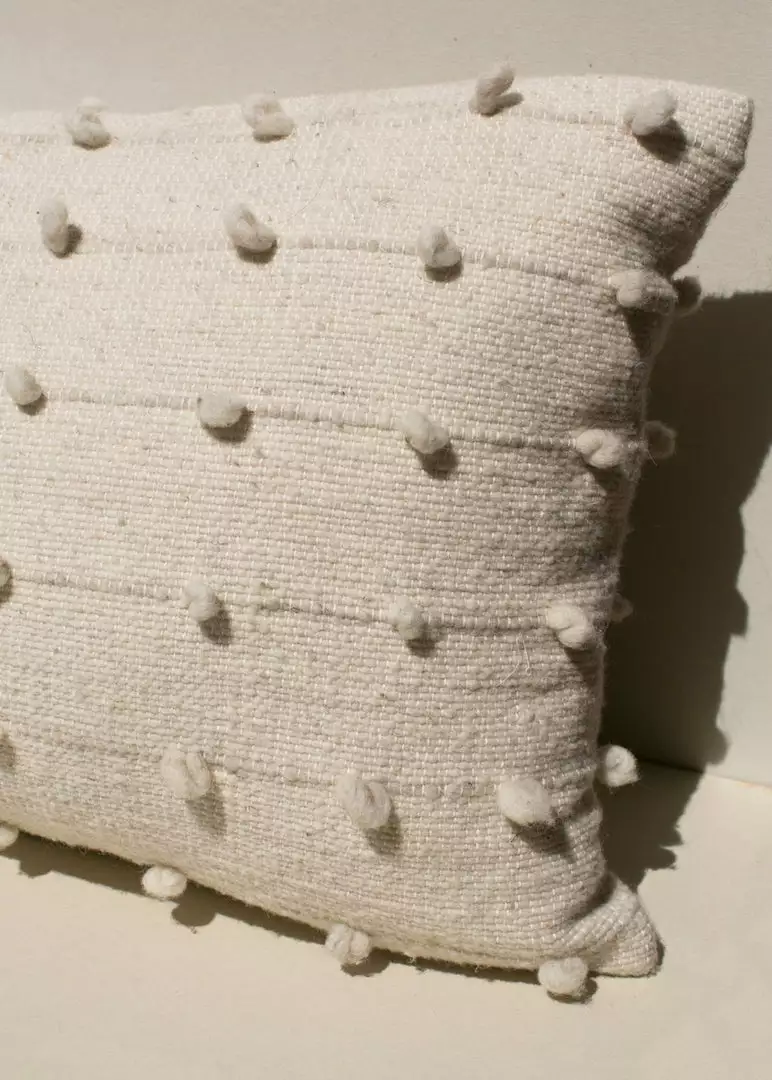 This soft, rustic, handwoven wool pillow cover was hand crafted in central Mexico. This traditional Mexican design adds a delicate, soft touch to any space. The wool is sourced locally and the dyeing and weaving is done in a family-run workshop in the Sierra Norte Mountains.