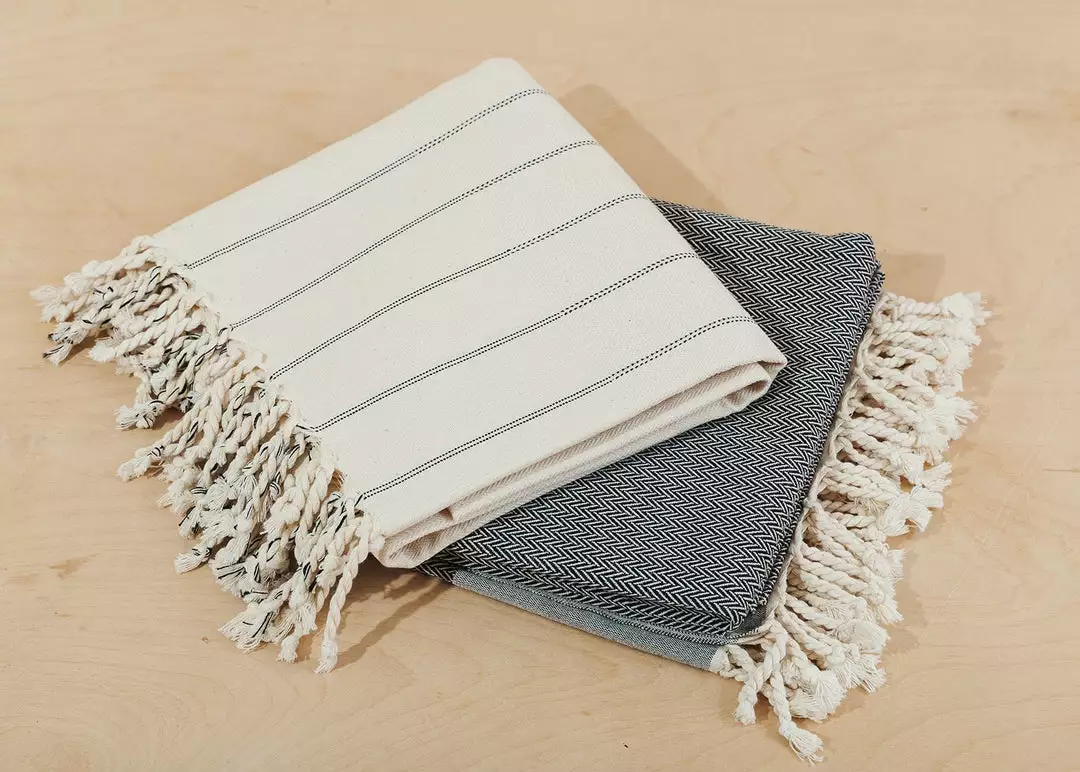 These woven cotton towels or “foutas” are crafted by a small weaving group in northern Tunisia. These eco-friendly staples of Northern Africa are woven on antique looms using traditional, environmentally conscious techniques which have been passed down through the generations. Gets softer with every wash.