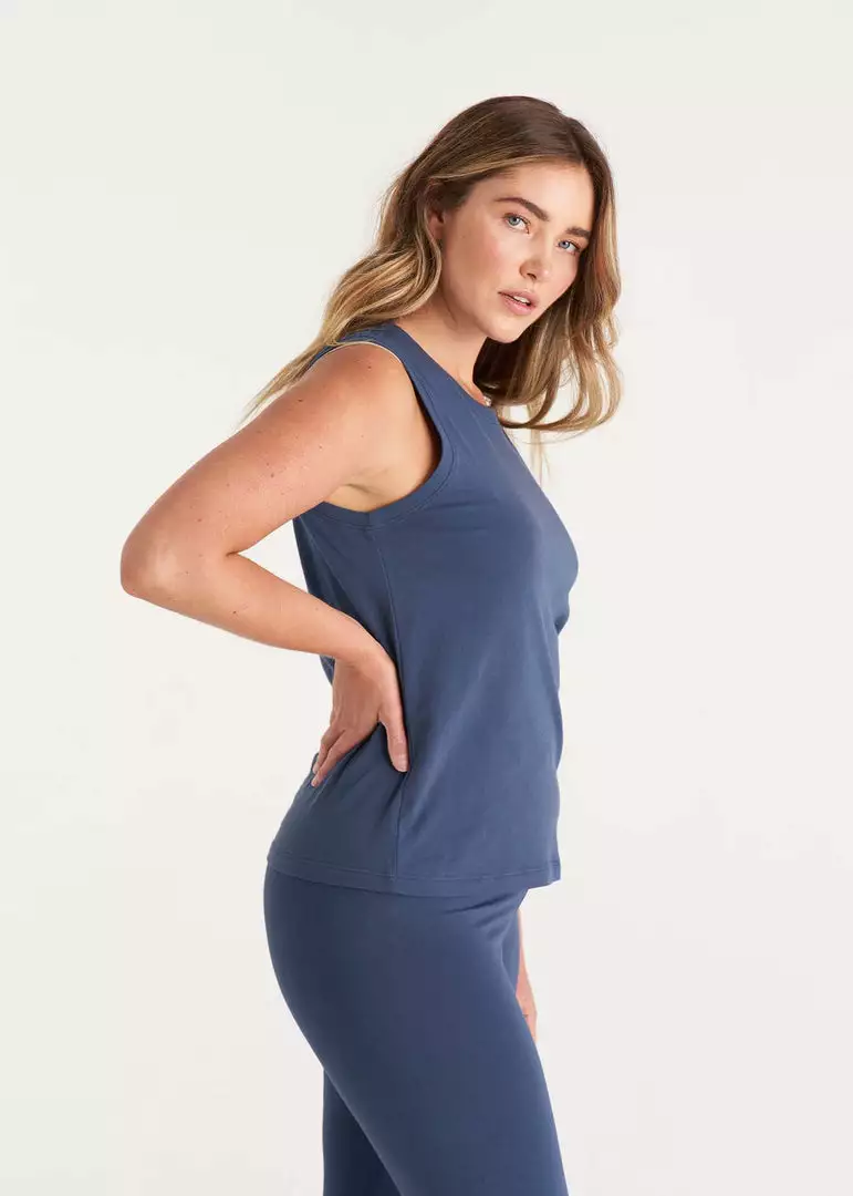 This versatile Muscle Tank is a cozy staple piece to bring any outfit through the seasons. Made with breathable organic and recycled cotton jersey and finished with eco-friendly dyes.
