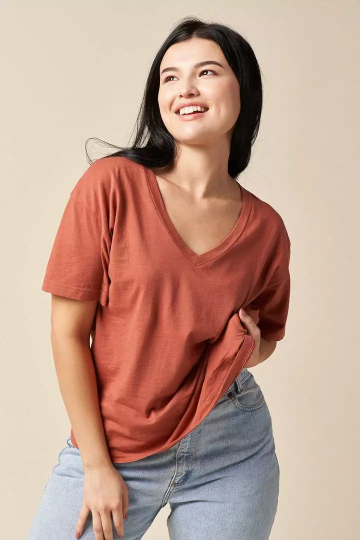 This V neck earned its name for its laid-back shape. Its super soft fabric, made with eco-friendly dyes, gives a lived-in look thatβs easy to dress up or down. Made of organic cotton and clean cutting waste, meant for a landfill, this recycled tee is as good for you as it is for the planet.
