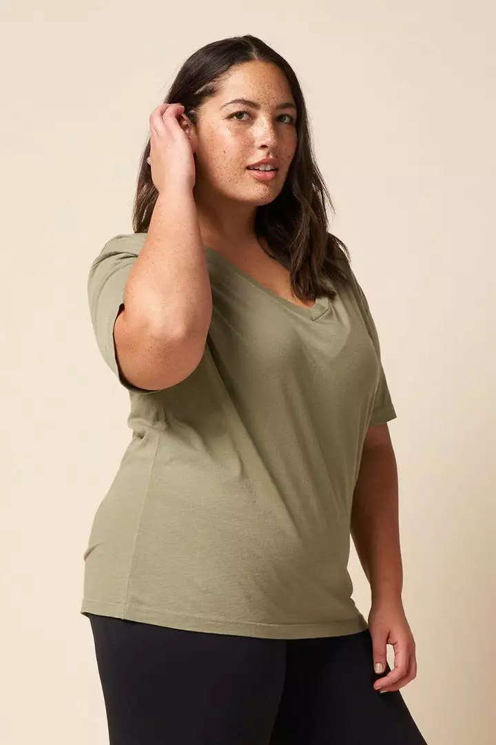 This V neck earned its name for its laid-back shape. Its super soft fabric, made with eco-friendly dyes, gives a lived-in look thatβs easy to dress up or down. Made of organic cotton and clean cutting waste, meant for a landfill, this recycled tee is as good for you as it is for the planet.