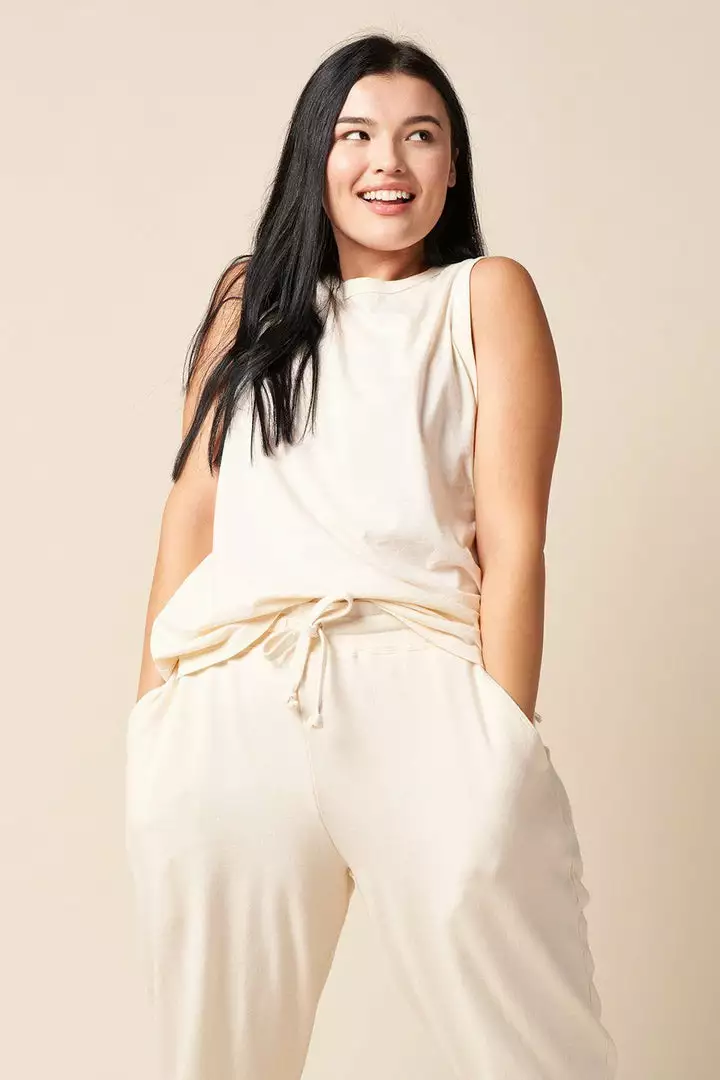 Tuck in, tie, let loose – whatever you fancy. This tank pairs with anything from your favorite high waisted jeans, to the Classic Jogger. Made of recycled and organic cotton, its soft feel and vintage-y wash comes from non-toxic and low impact dyes.