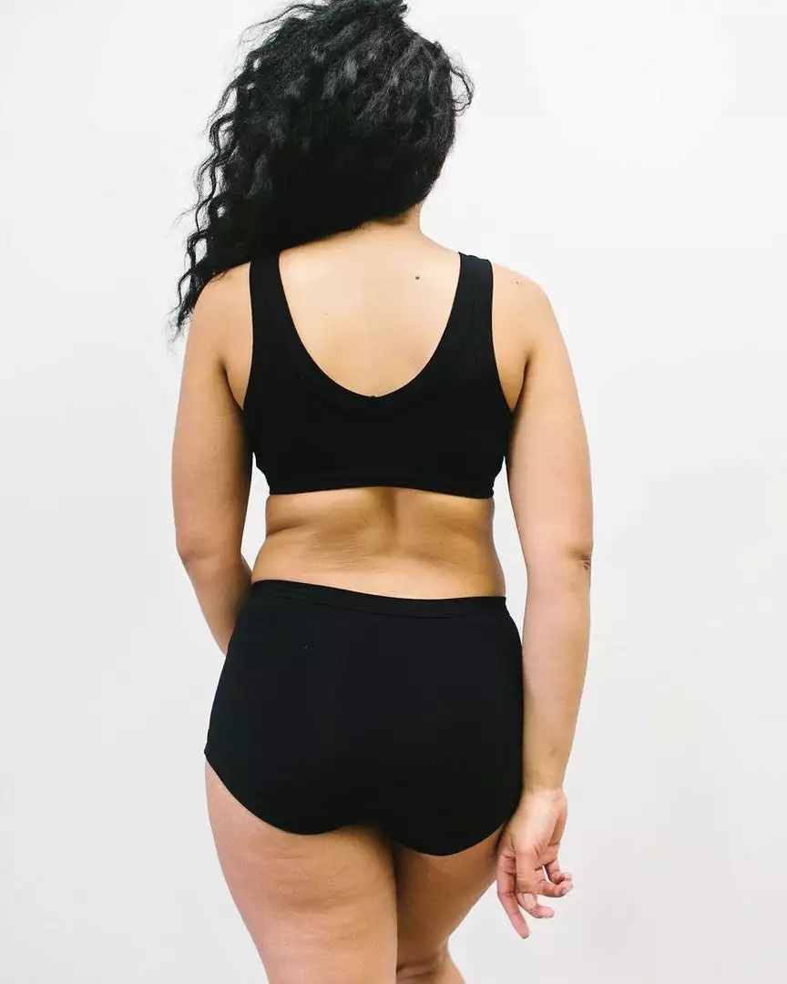 This bralette is super comfy. There is a piece of elastic sewn into the binding for extra support below the bust. It feels supportive and solid, without feeling constraining or too bra-like.