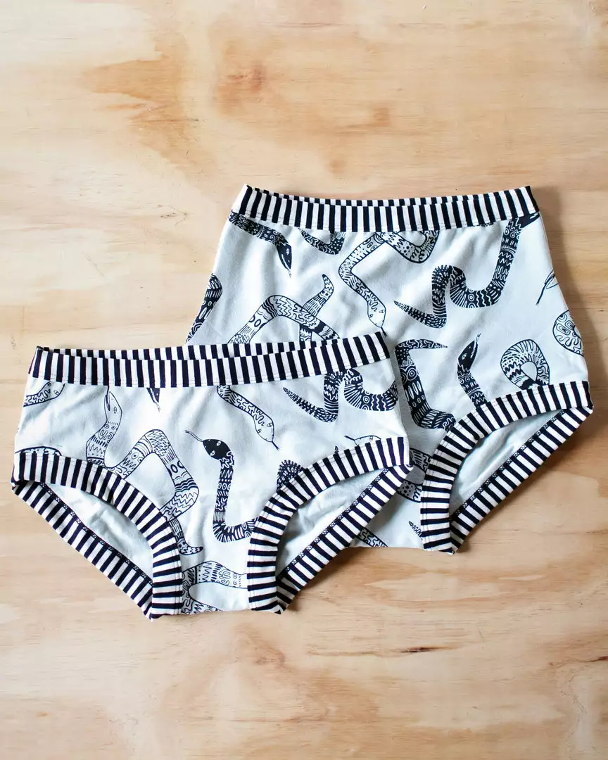 This spooky print is sure to give you the slithers. In sizes small to 3x this comfortable super high-waisted brief sits in the natural crease at the top of the leg and up over the navel. Thunderpants are cut with enough fabric to cover your rear end and the comfy bands hold them in place so even the most active folk will no longer need to readjust their underwear.