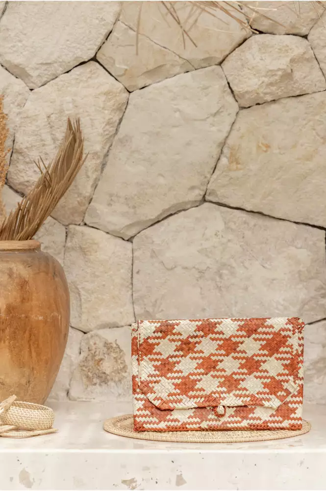 The Plaid Rattan Clutch is the ideal size for your daily necessities. Its laid back, natural style makes it an effortless addition to any outfit, dressed up or down.