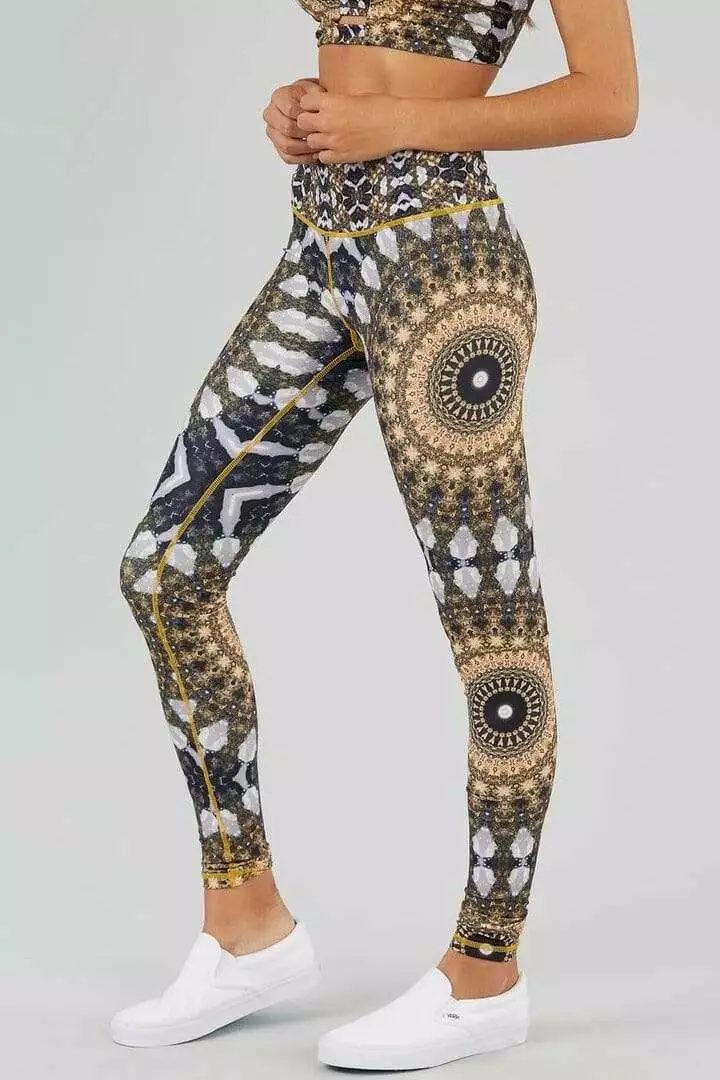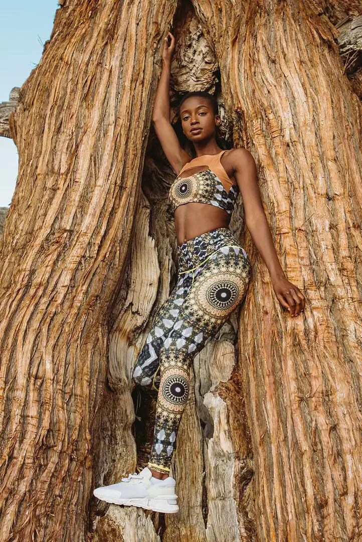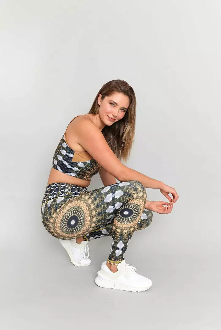 The Noor print touches every corner of your soul with golden hour warmth. The high-waist flatters any body while remaining supportive and breathable. With a zip pocket on the back of the waistband, there is no need to worry about where to put your keys or credit card while you’re out on the festival dance floor.