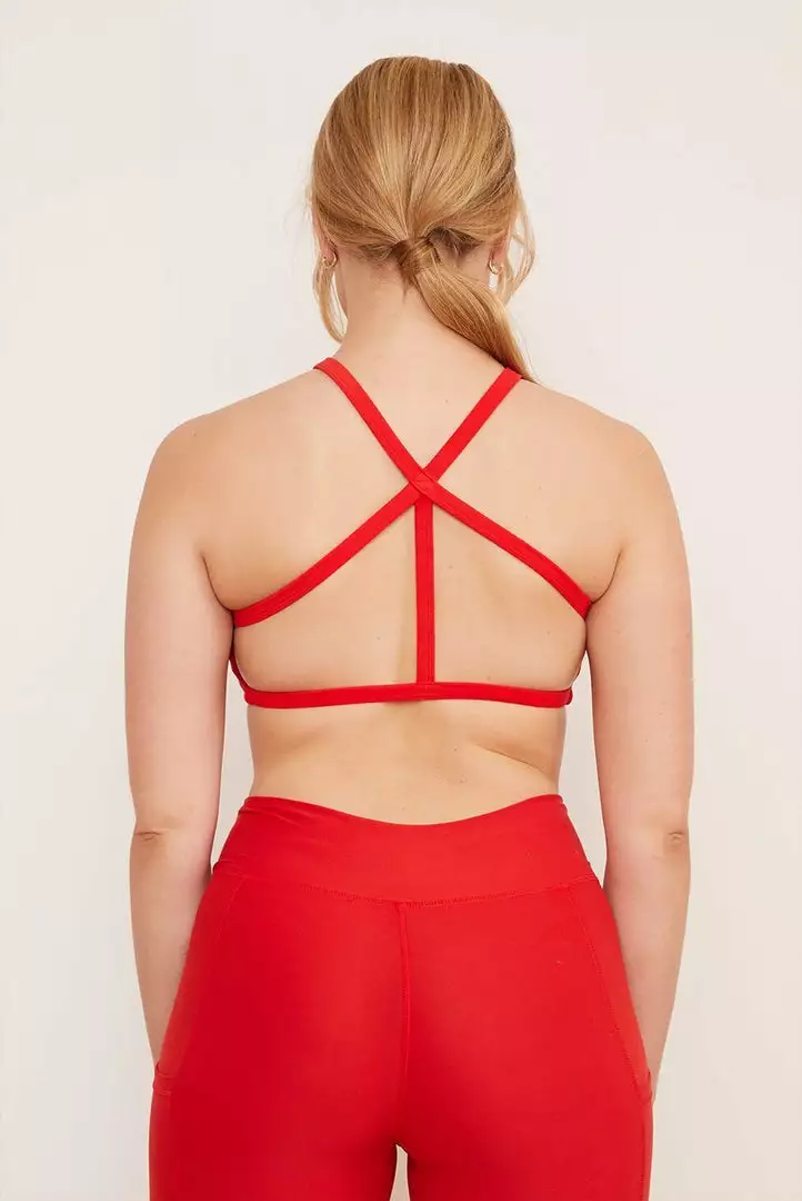 This warm, vibrant red is here to turn up the heat and be your future power color. Featuring a high y-neck in front and a sexy, strappy back, this style is perfect for wearing on its own as a bralette or layered under tanks