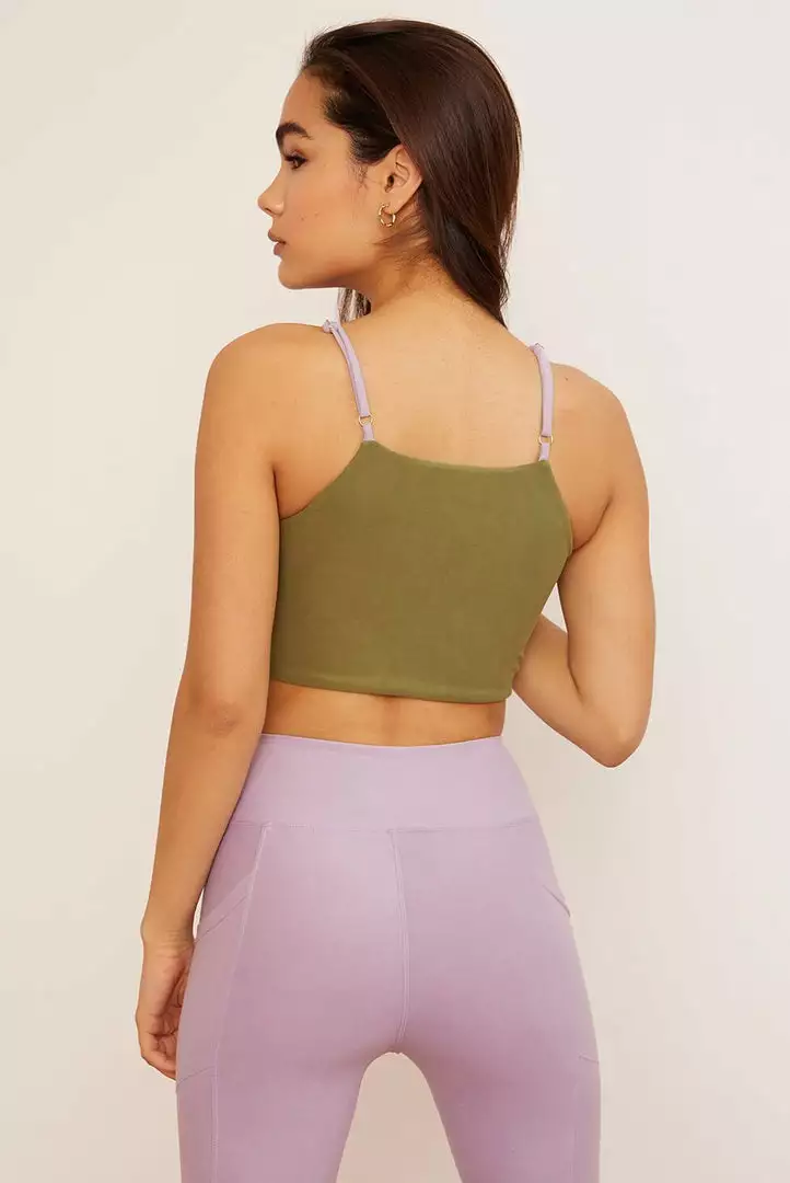 One top, four ways. Wear this miracle of a top with the crisscross detailing in the front or turn it around for a sporty high-neck. For the next trick, flip it inside out for a color-blocked look. Featuring adjustable straps, this mid-length top is your sustainable staple. And it’s lined for just the right amount of coverage.
