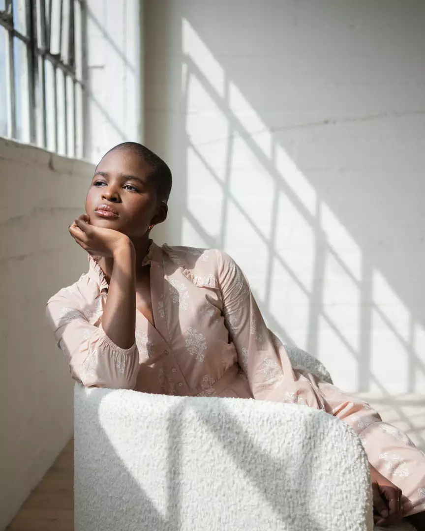 An artful and elegant addition to every woman’s wardrobe. The Aurelia Dress, accented with coy ruffled details at the collar and shoulder, is meticulously tailored and hand-printed with a floral block-print design. Falls just below the knee and made from organic cotton voile.