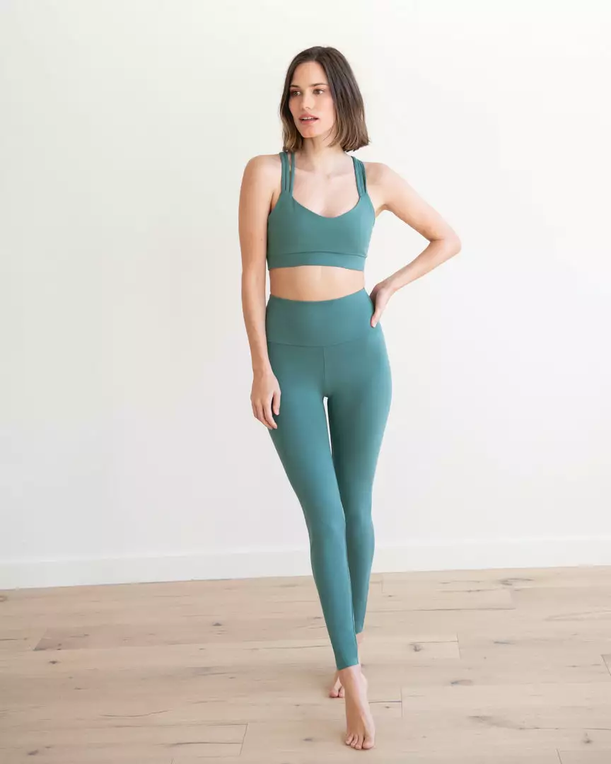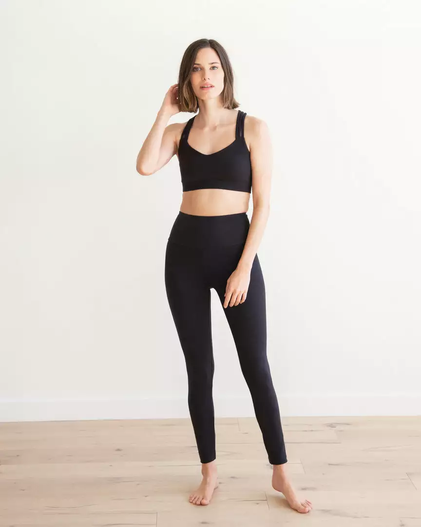 The Flex Legging can be worn for yoga or styled with a chunky cardigan for a little downtown cool. Features wide banding detail and a high-waist rise for a flattering fit.