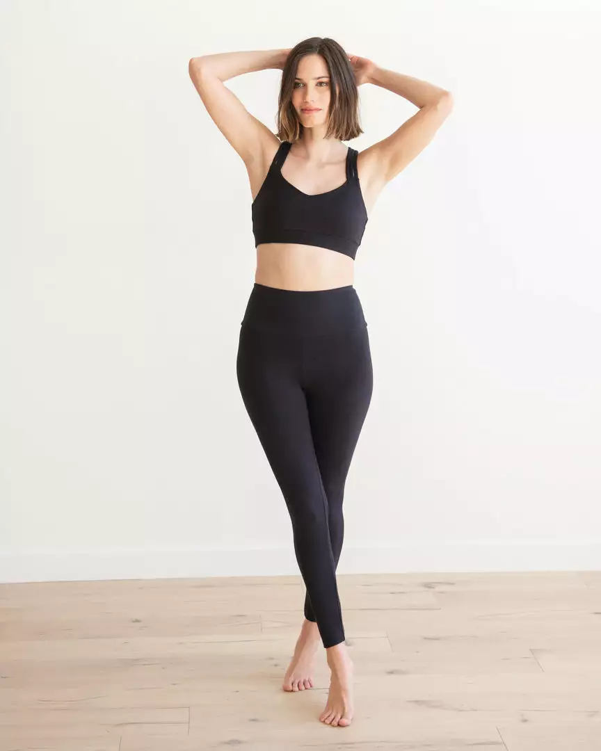 The Define Yoga Bra is made with a balanced blend of organic cotton and spandex. An ideal complement to the Renew Legging, with sleek triple-crossed strap detailing in back and full coverage in the front.