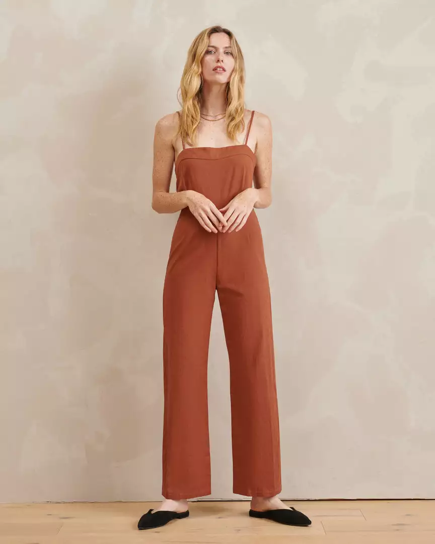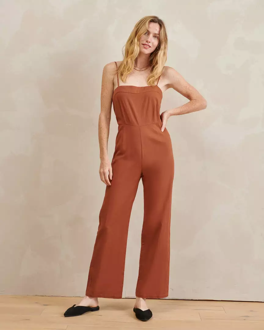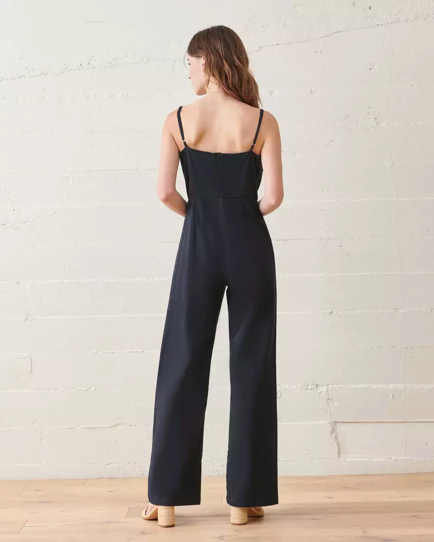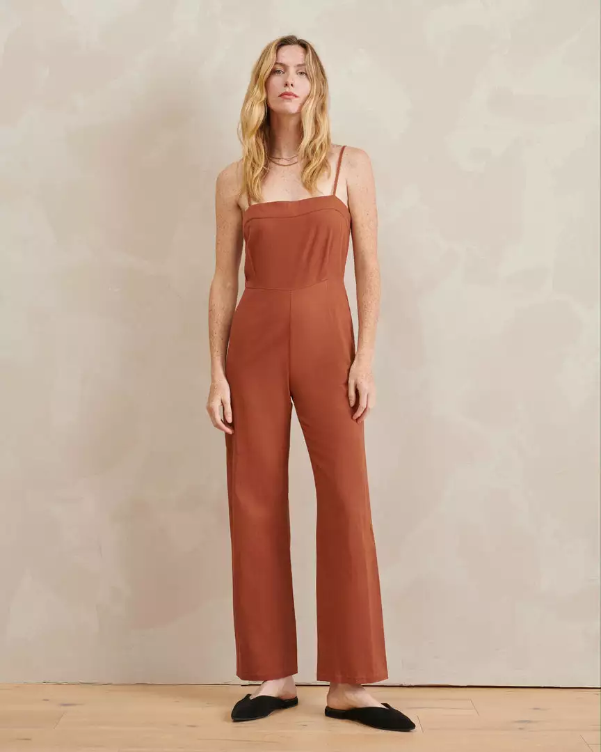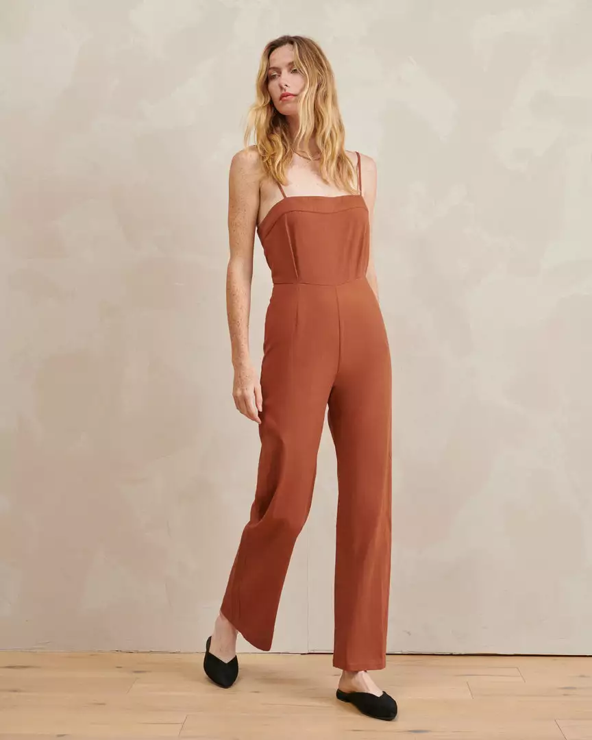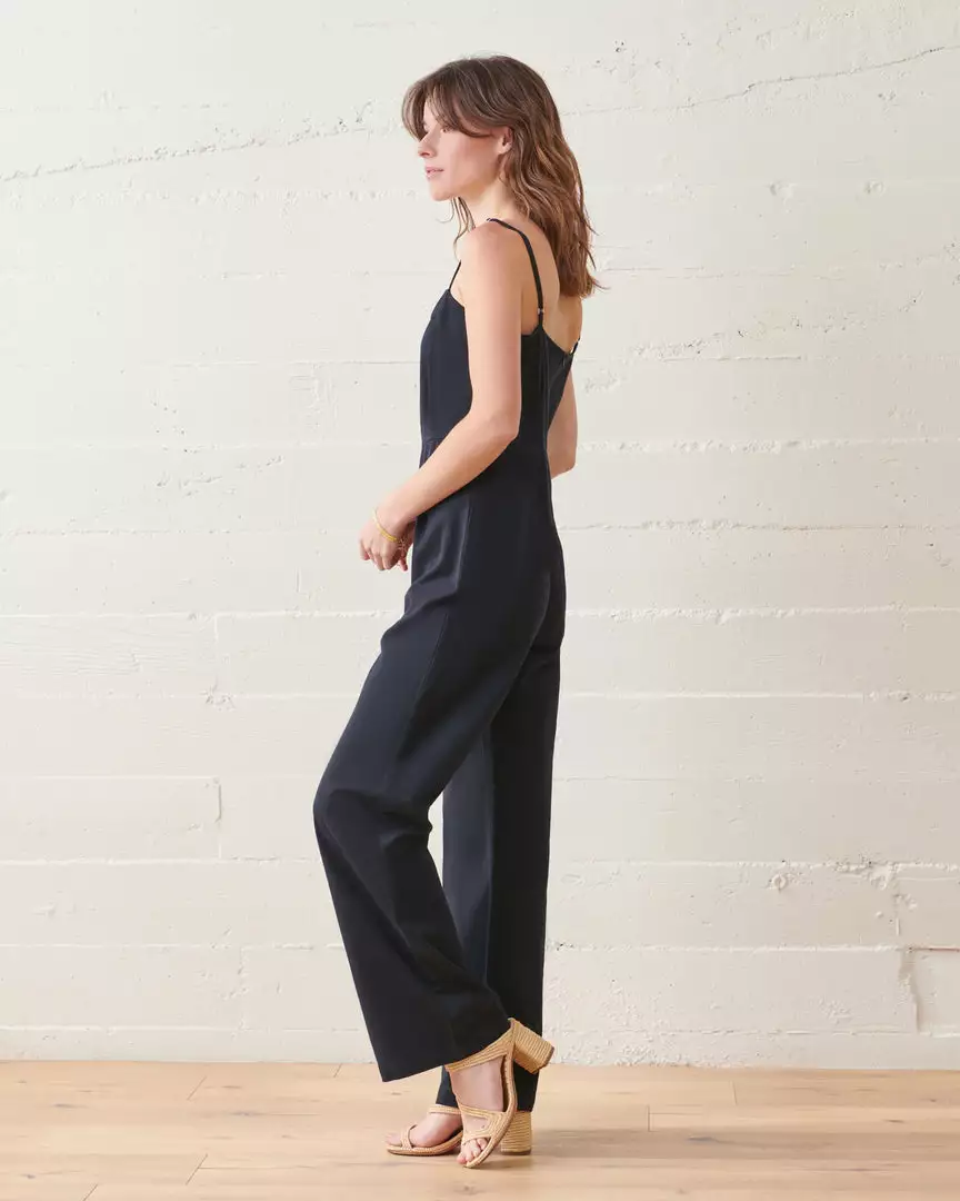 An easy choice for an effortlessly polished outfit. Structured yet delicate, a representation of beauty and strength at once. Featuring a clean neckline and fitted bodice, offering structural shape to this wide-leg jumpsuit. Constructed from lightweight stretch eco-twil.
