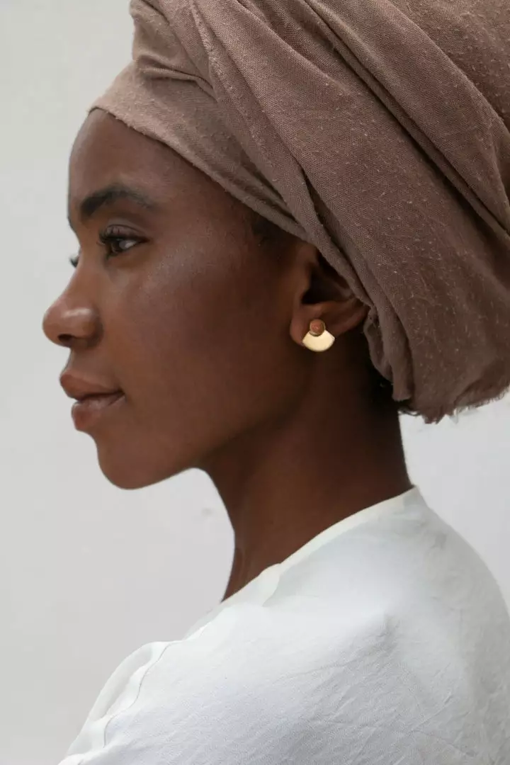 Yewo’s jewelry is made from brass, which is made up of copper + zinc and is nickel free. Yewo’s earring posts are made from hypoallergenic Sterling Silver and the backs are silver-plated brass that contains no nickel or plastic.