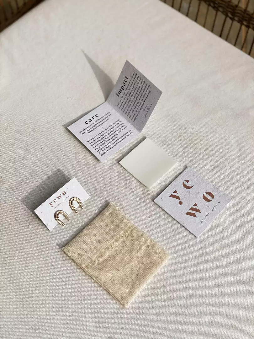 Yewo’s jewelry is made from brass, which is made up of copper + zinc and is nickel free. Yewo’s earring posts are made from hypoallergenic Sterling Silver and the backs are silver-plated brass that contains no nickel or plastic.