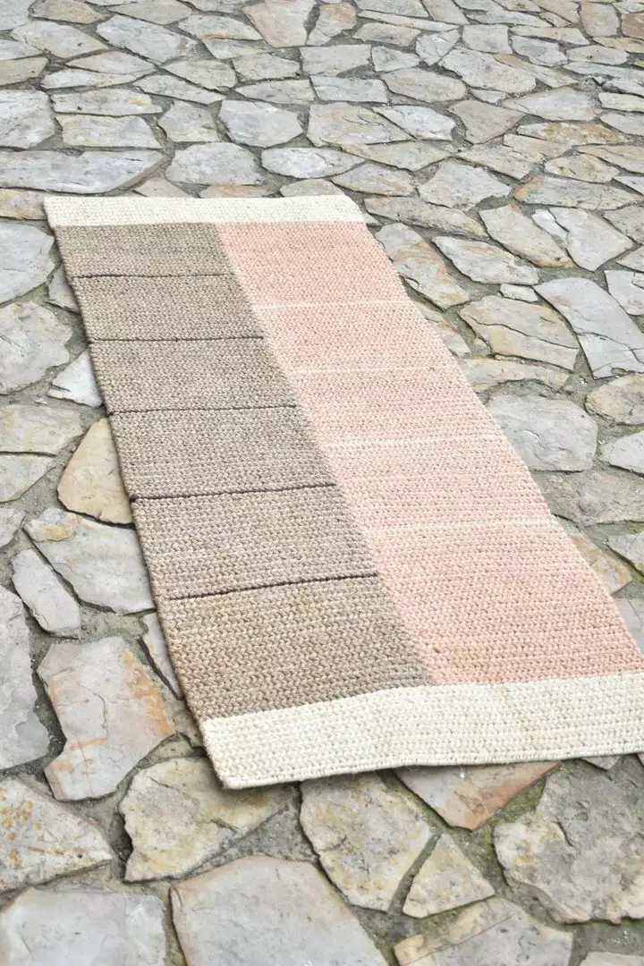 Fique is a Colombian fiber commonly used for rug and basket weaving. The fiber comes from the family of agave plants, and like hemp, it does not need any fertilizers or pesticides to grow. This runner rug is handwoven by a family of artisans from the Santander region of Colombia. Woven in a vertical loom, this rug is hand-knotted for 2 weeks and the result is a perfectly crafted geometric modern rug for outdoor and indoor spaces.