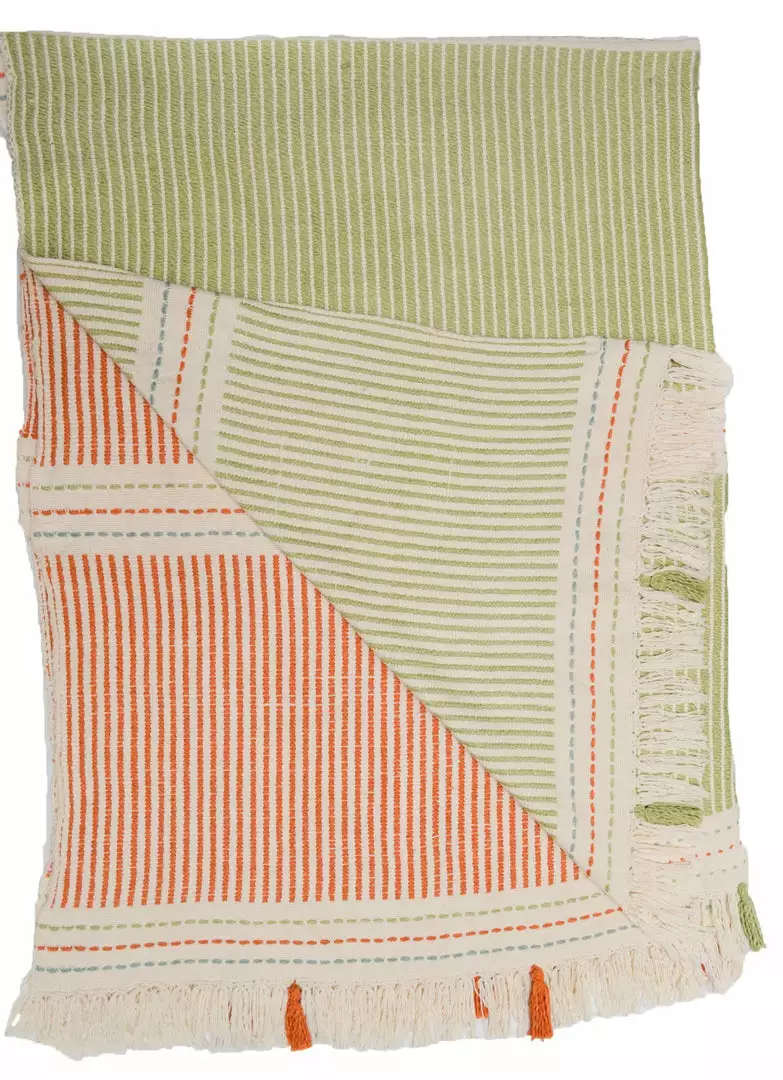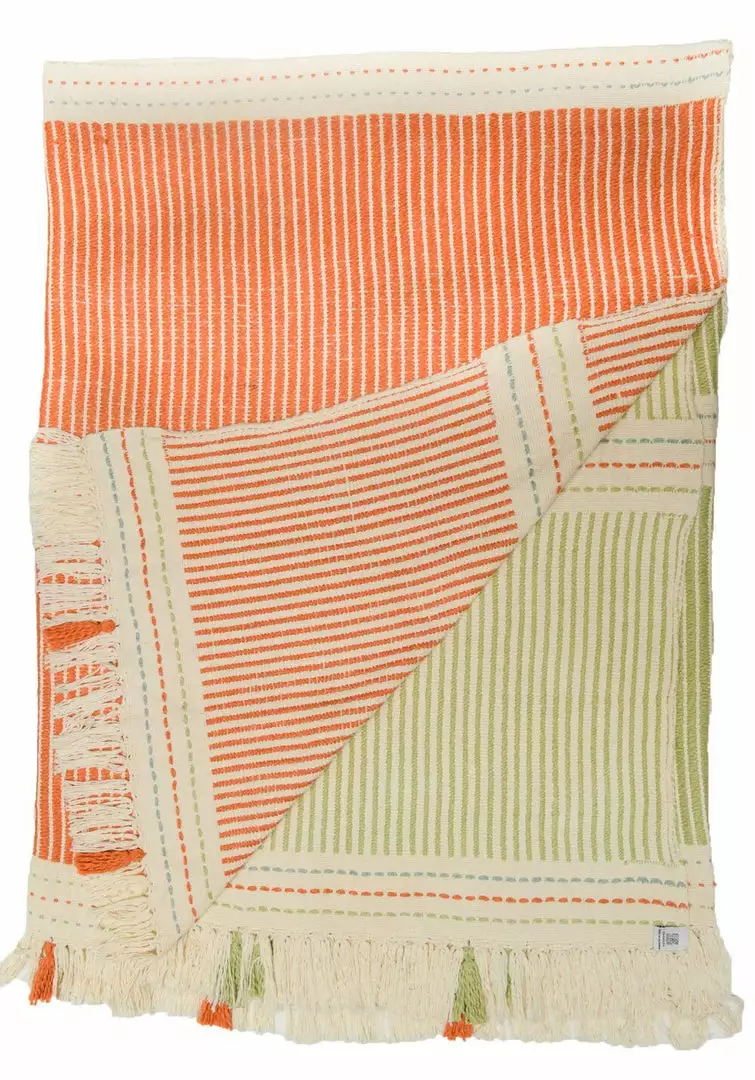 The Lulo fruit has a lovely combination of bright orange on the outside and shades of green on the inside. A famous fruit in Colombia, the lulo was the main inspiration for this colorful orange and green throw. A soft dense weave, the lulo throw was made reversible to showcase conservative neutrals with a hint of fresh natural pastels.